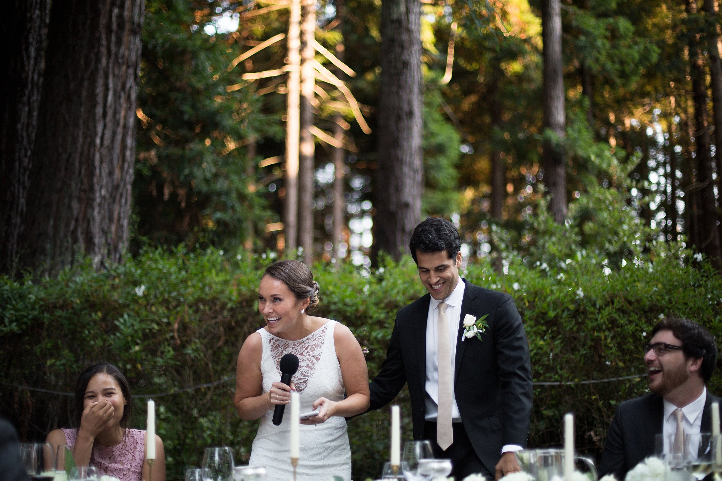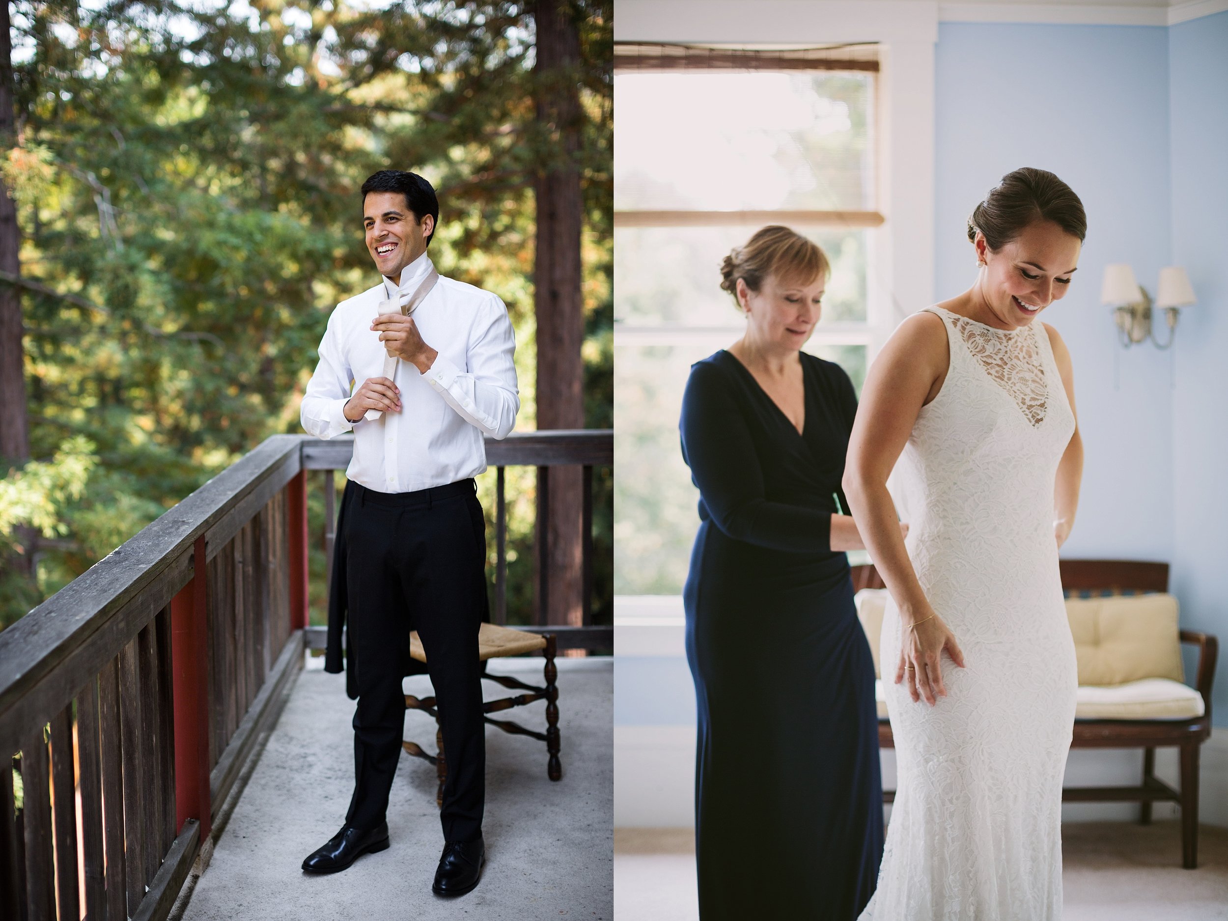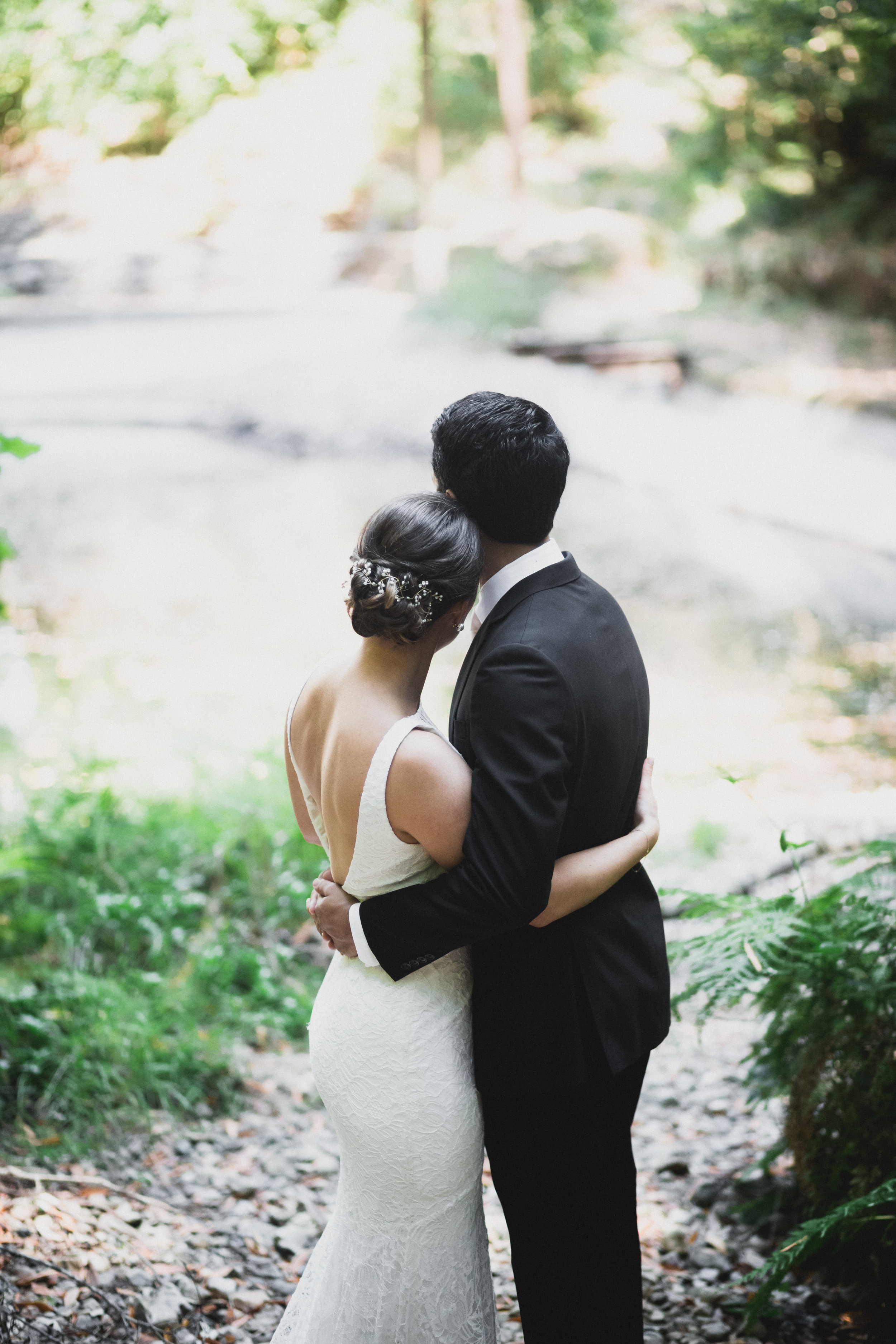 Loyal, loving, and kind. These words repeatedly came up during Bizzy and Nikhil’s romantic wedding weekend at the Ralston White Retreat just north of San Francisco. As each family member and friend from different life stages spoke of them it was amazing how many of the exact same words popped up. I’ve been lucky enough to know the couple through my sister Marie and I have to say, in my experience – everyone was spot on. To really get into this dreamy wedding story I think we have to start with the location they chose for everyone to gather and share in their celebration. The Ralston White Retreat is nestled up on a hill in Mill Valley. To get to it, you take a narrow windy road through redwoods. Many members of the wedding party and some family members stayed there the length of the weekend and it had the feeling of one big happy family. On the day I arrived I was greeted with bluebird skies and warm dry California breezes that smelled like pine needles and flowers. From start to finish this weekend blew me away. Bizzy and Nikhil are pretty much the sweetest people you’ll ever come across and the circle of friends and family that surrounded them was a reflection of that. Everywhere you turned old friends were catching up and new ones were being made. Children were goofing off as they do and thankfully I was often able to catch it happening. And in one of the most heart-felt moves, my other two sisters were brought in to play music for the weekend so all of my siblings were there the whole weekend. It was so special. We heard copious amounts of Beyonce (even on their way back up the aisle as arranged by said sisters for violin & cello), took a magical stroll through the woods for the first look, and closed out the reception with a surprise special In-N-Out delivery. The speeches were so moving, the photobooth rocked, there was gold confetti for the first dance, the DJ was incredible and the dinner was under a beautiful tree canopy. I half expected to see fairies and pixie dust appear as everyone ate, it was THAT magical. Seriously, I just can’t even do it justice, although I certainly did my best. What an incredible honor to capture this special weekend for these amazing people. It’s one I won’t soon forget.